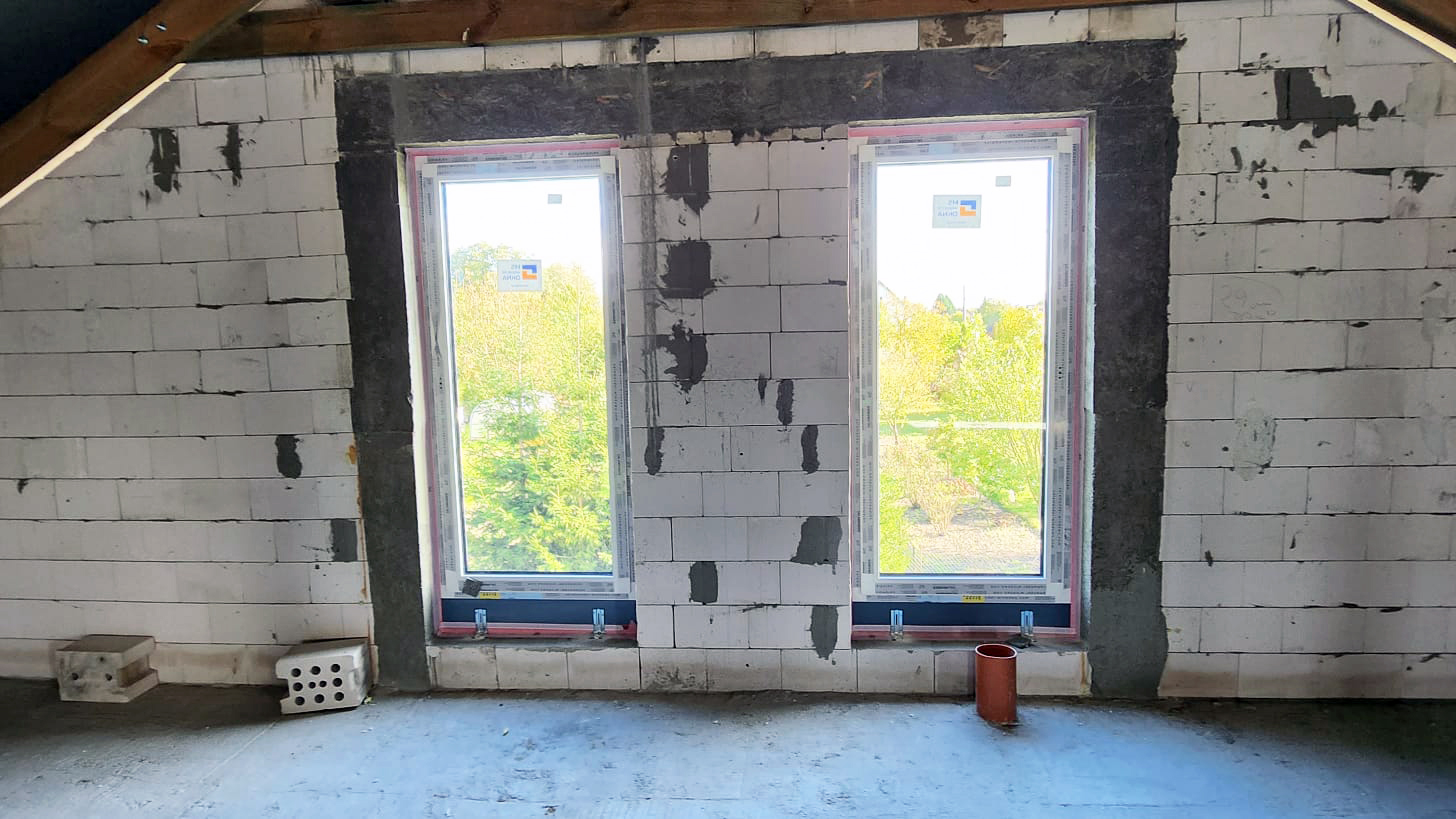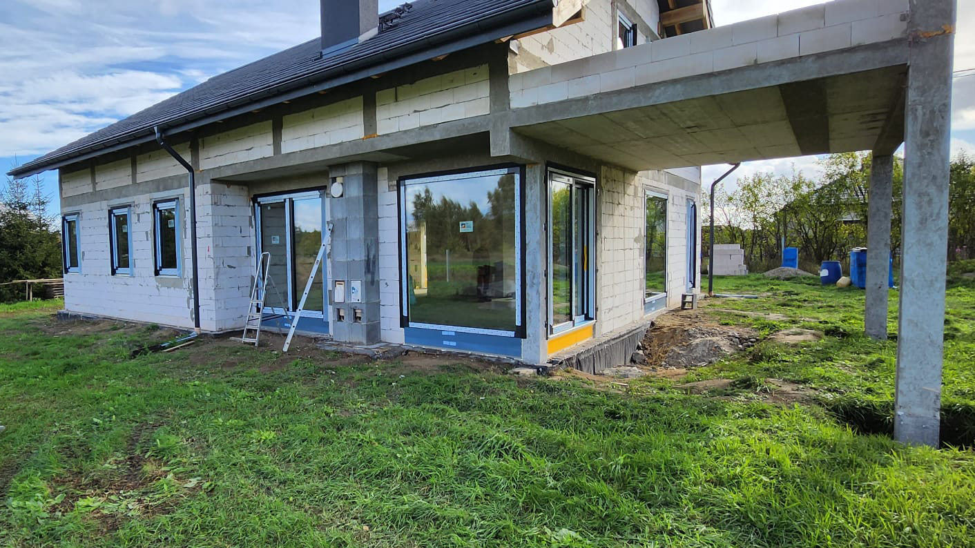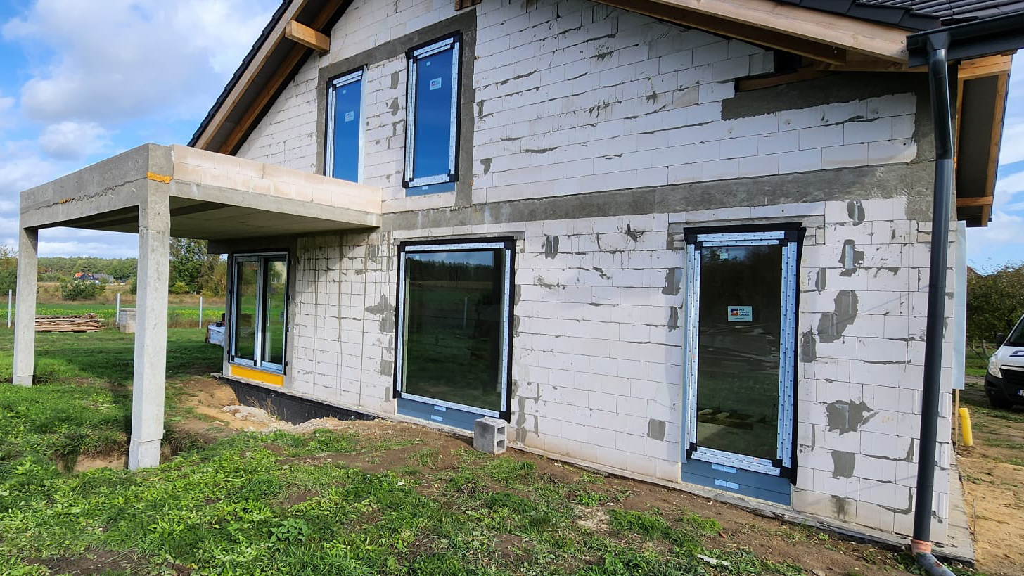 Okna PCV zamontowane w ścianie 3 warstwowej - elewacją klinkierowa.