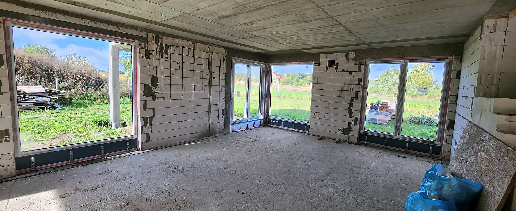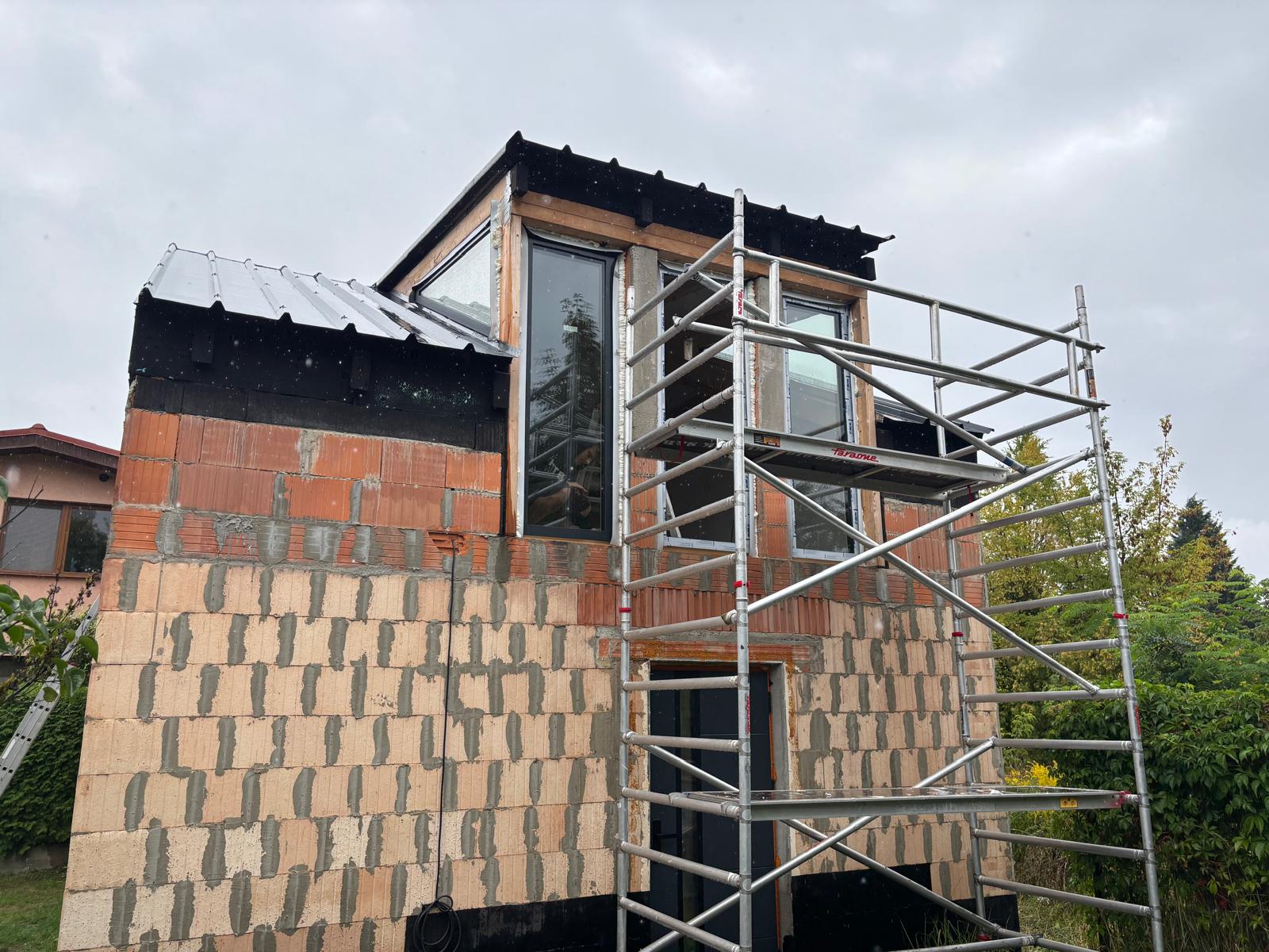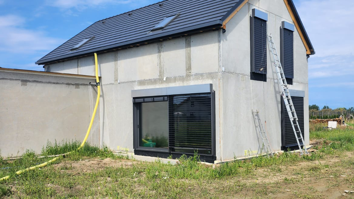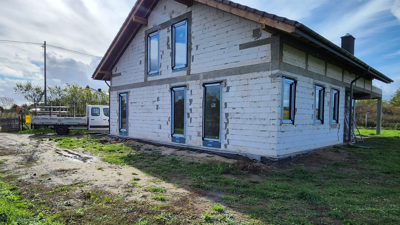 Okna PCV zamontowane w ścianie 3 warstwowej - elewacją klinkierowa.